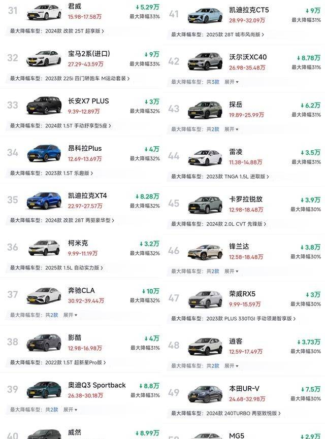 特斯拉的降價(jià)策略引發(fā)了連鎖反應(yīng),其他新能源品牌紛紛跟進(jìn)。比亞迪秦PLUS入門款價(jià)格直接降至9.98萬元,實(shí)現(xiàn)了油電同價(jià),這一價(jià)格策略對(duì)傳統(tǒng)燃油車市場(chǎng)構(gòu)成了巨大威脅。面對(duì)新能源品牌的強(qiáng)勢(shì)進(jìn)攻,合資燃油車品牌不得不采取應(yīng)對(duì)措施,通過降價(jià)來爭(zhēng)奪市場(chǎng)份額。豪華品牌入門級(jí)車型也未能幸免,奔馳A級(jí)、寶馬X1、奧迪A4L等車型紛紛大幅降價(jià),優(yōu)惠幅度令人咋舌。凱迪拉克CT5、沃爾沃S60等二線豪華品牌車型也加入了降價(jià)行列,直減數(shù)萬元。