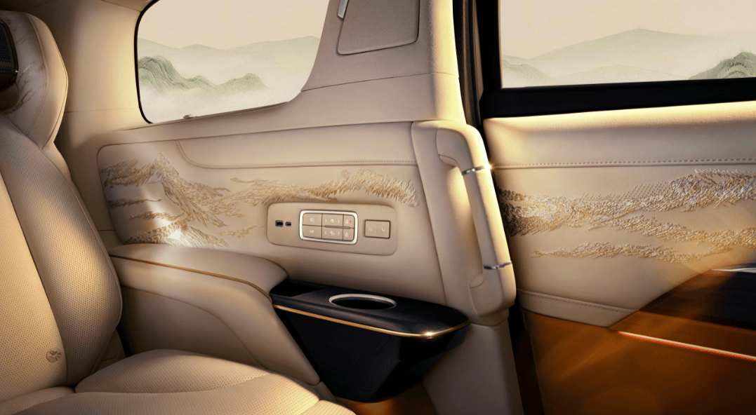 在私密空間營造方面,四座版本搭載32英寸可升降智能屏,支持全封閉私密模式與通透交互模式的快速切換,前后艙對講功能則兼顧了商務(wù)溝通需求。全球首款專為后排開發(fā)的BOSE悅尊音響系統(tǒng),配合136092針純手工刺繡的"江山如畫"主題內(nèi)飾、15mm進口羊毛腳墊,以及具備8種星空模式和語音觸發(fā)流星功能的星河繡帷頂棚,共同構(gòu)建出移動的藝術(shù)空間。