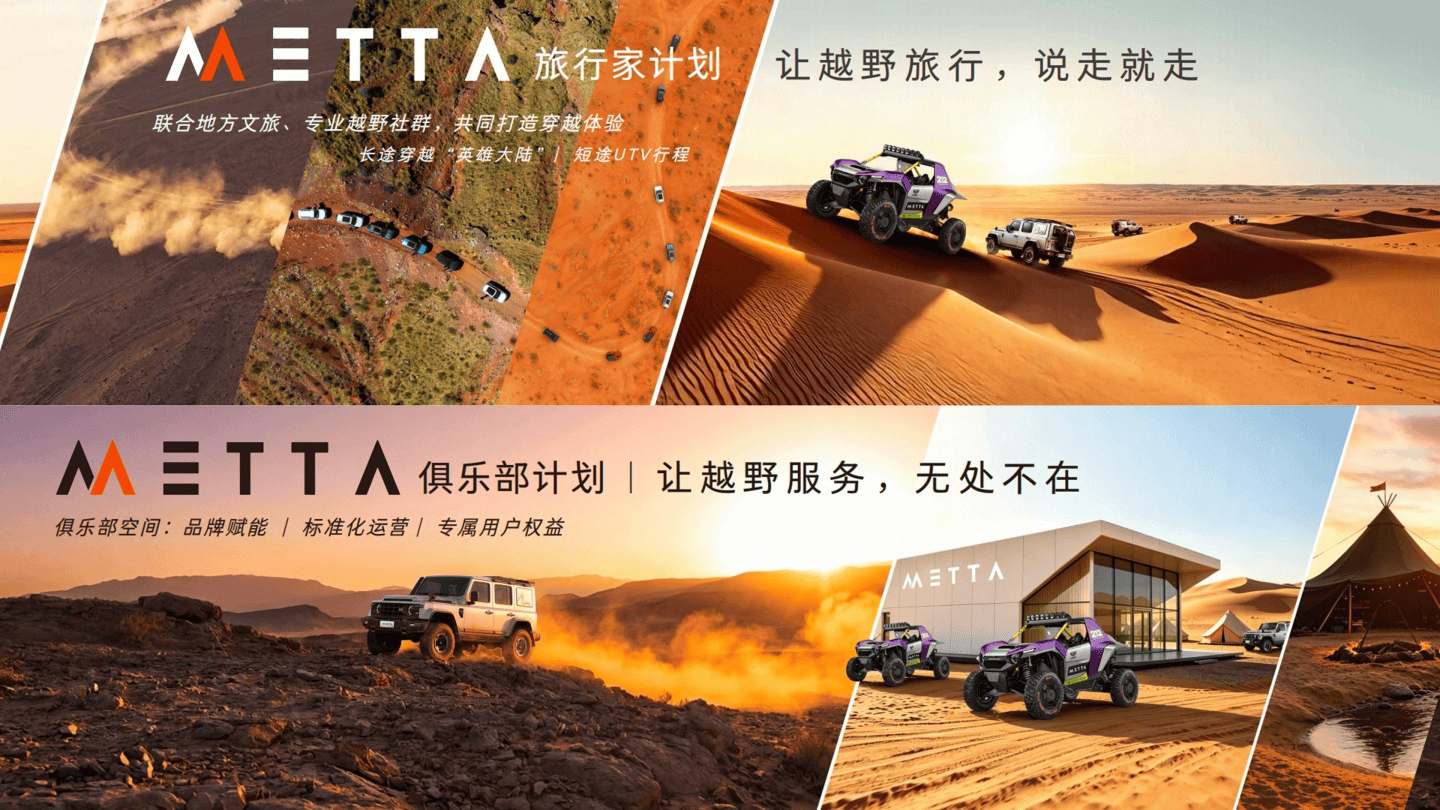 METTA系列的核心在于“人人皆可越野”的理念。為了實現這一目標,212越野車特別邀請了達喀爾冠軍韓魏參與車輛的調校工作,確保每一款車型都能擁有專業級的性能表現。同時,品牌還推出了“METTA旅行家”與“METTA俱樂部”兩大項目,通過與文旅機構和社群組織的合作,為越野愛好者們打造了一系列穿越路線和豐富的活動體驗,進一步降低了越野的門檻,讓更多人能夠享受到越野帶來的樂趣。